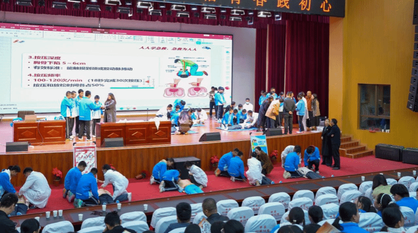 开云危重症护理团队党员骨干教师通过“理论讲解 + 实操演示 + 分组实训”的形式,对现场思源实验公司员工开展心肺复苏、创伤包扎、窒息抢救等常用急救技能培训。党员教师分组指导员工实操,现场氛围热烈,员工们踊跃尝试、互相点评,强化了员工安全防护意识,提升了自身急救技能。