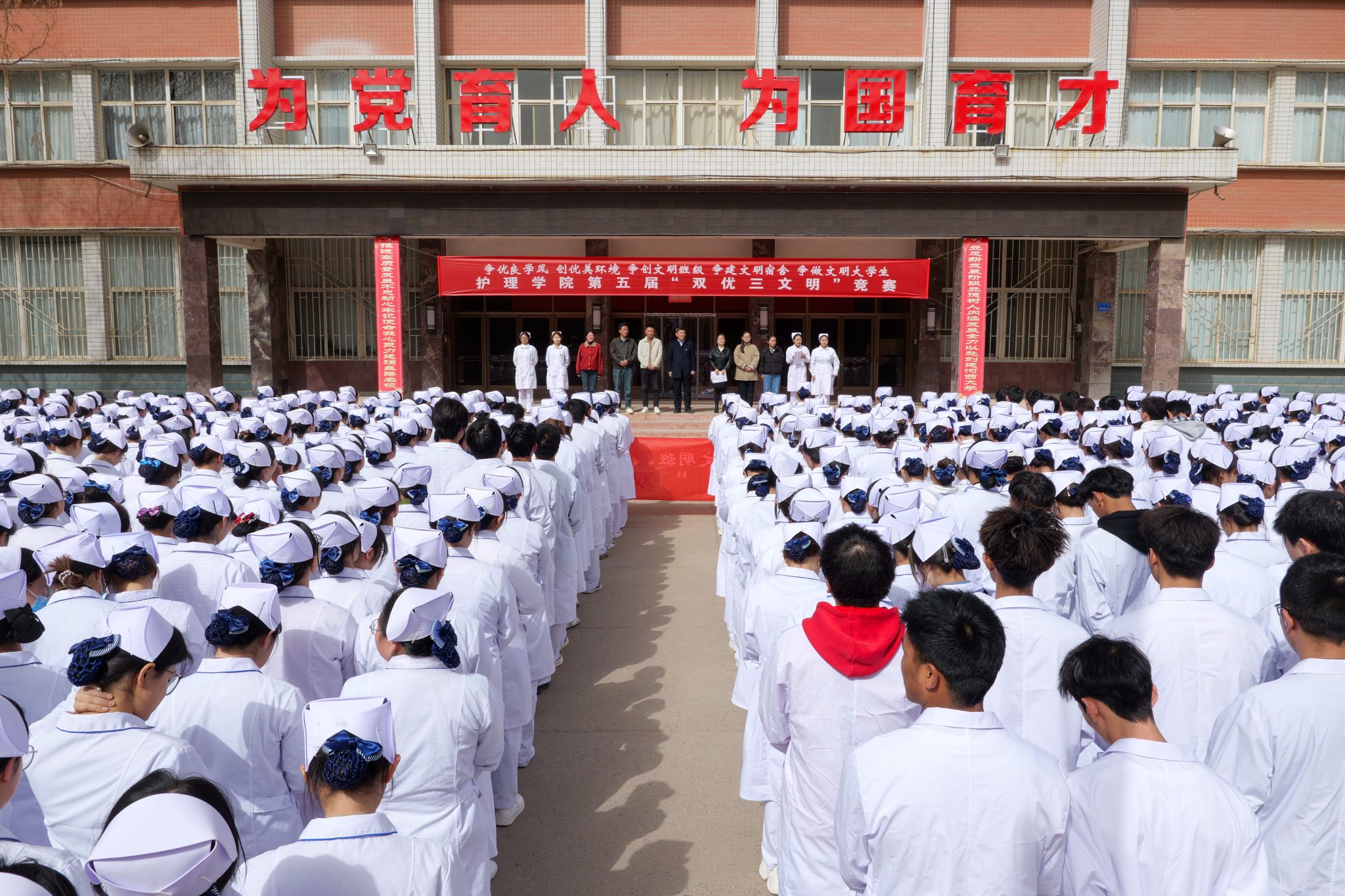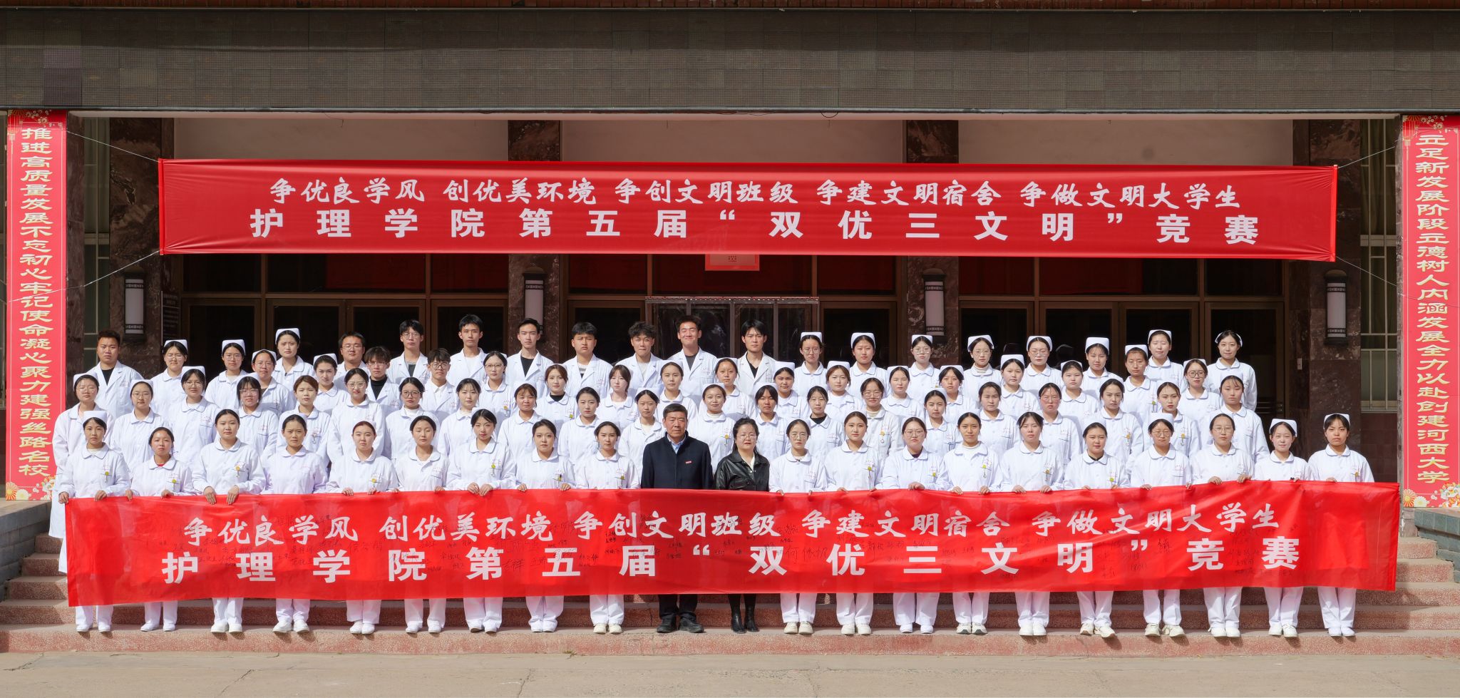 公司将按照公司党代会“强校行动”早日建成河西大学目标和“三抓三促”行动要求,落实公司产品审核评估整改措施,加强学风建设,提高员工文明素养,培育奋发进取、追求卓越的质量文化;将常态化“双优三文明”竞赛贯穿公司全年员工工作,久久为功,引领员工成长成才促进高质量充分就业。希望同学们从自我做起、从现在做起、从身边的点滴小事做起,以优良学风铸就专业底色,以文明行动彰显青春担当,携手“双优三文明”竞赛,展示护理学子靓丽的青春风采!