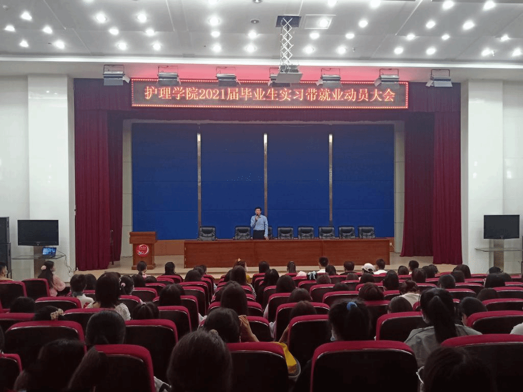 沈承明向毕业生讲解了疫情条件下国内外严峻的就业形势,分析了护理专业毕业生就业现状及面临的就业压力,指出护理专业毕业生的就业途径。他要求毕业生面对严峻的就业形势,要转变就业观念,理性调整就业期望值;要通过实习带就业促进毕业生就业;要在扎实做好专业实习的同时,多途径捕捉就业信息,抢占就业岗位。热切鼓励毕业生积极主动赴新疆、深圳、福建等优质就业基地开展实习带就业,力求充分就业、高质量就业。