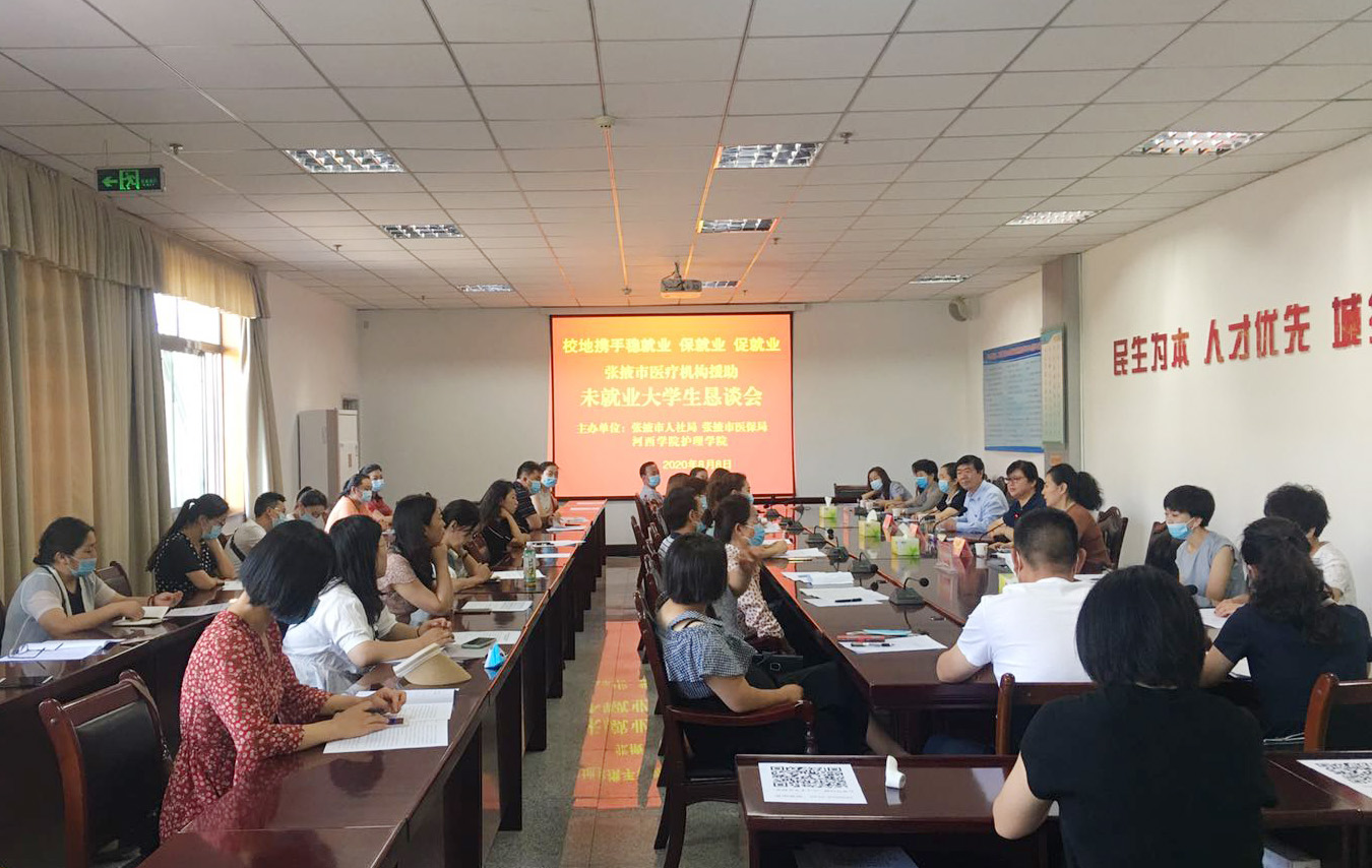 会上,张掖市人社局人才中心负责人解读了《甘肃省青年见习计划实施方案》和《2020年张掖市支持未就业毕业高校毕业生到企业就业项目公告》等相关政策,热情鼓励张掖市医疗单位落实中央“六稳”工作、“六保”任务,抓住机遇与就业政策红利,利用老员工就业见习援助岗,招录医学类未就业毕业生,为事业发展储备人才,全力促进高校毕业生就业。