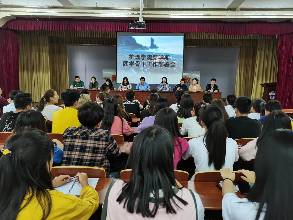 学工办负责人对本学期日常员工管理、奖助学金、家庭经济困难员工认定、就业创业工作、共青团员工会及社团工作进行了安排部署;对团学干部工作提出了明确要求。