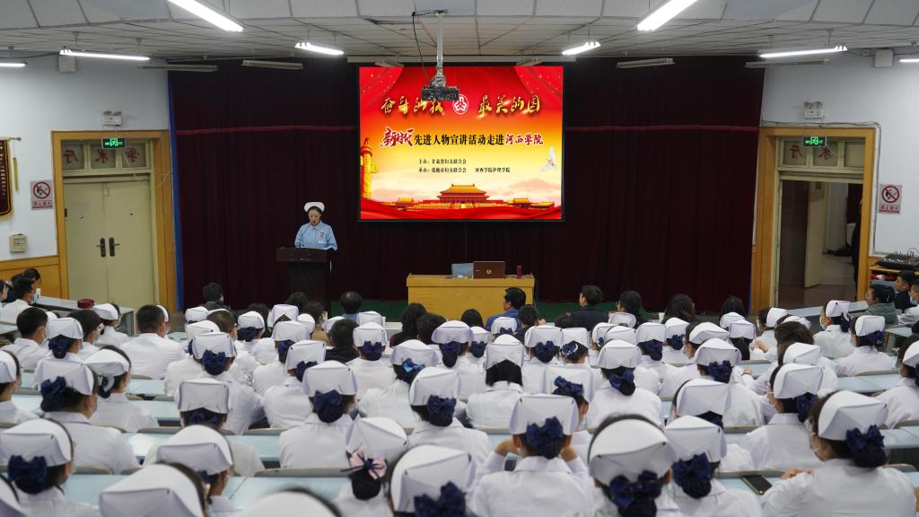 孙梦婕从医者担当、使命初心、对病人的悉心照料等方面,生动讲述了一名医者、一名共产党员,在国家危难关键时刻挺身而出、逆行而上,再现了抗疫一线医患之间守望相助、队友之间团结互助的感人场景,展示了白衣天使“人道博爱奉献”的红十字精神,体现了不畏艰险、迎难而上的使命担当,鼓舞广大护理学子坚定做好护理工作的信心和决心,树立救死扶伤、医者仁心的优良品质,用赤诚爱国之心和家国情,践行青春使命和担当。在师生的盛情邀请下,孙梦婕现场带领开云员工翩翩起舞,再现了被《人民日报》及国外媒体关注的,她在武汉方舱医院温暖无数患者的《火红的萨日朗》的精彩片段。