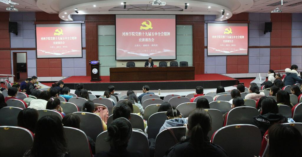 周均发从党的十九届五中全会基本情况、主要精神和学习贯彻全会精神促进教育高质量发展三个方面,系统阐释了十九届五中全会的重大意义、重要成果、主要内容;深入分析了我国进入新发展阶段的重要特征和重大意义,全面讲述了2035年远景目标和“十四五”时期我国发展的指导方针、主要目标和重点任务,并结合甘肃省情讲解了我省经济社会发展取得的新成就与未来发展目标。