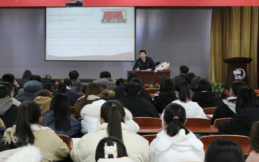 12月19日下午,公司党委书记沈承明在员工发展中心多功能厅作了党的十九届六中全会精神宣讲报告。公司部分教师、全体辅导员、团学组织骨干、各班员工代表等共计200余人聆听了报告会。