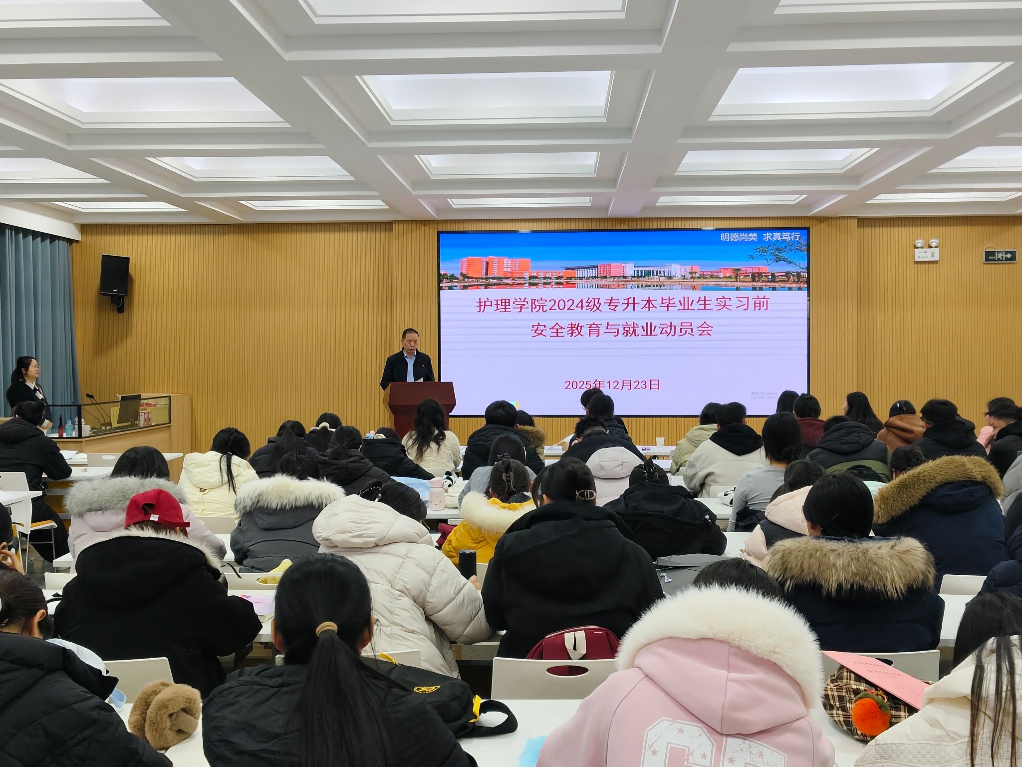 为做好2026届护理、助产专业专升本毕业生实习安排与就业指导工作,2025年12月23日,开云在员工发展中心二楼就业招聘大厅召开实习前安全教育与就业动员大会。公司领导班子、毕业班班主任、辅导员及全体184名2026届专升本毕业生参会。