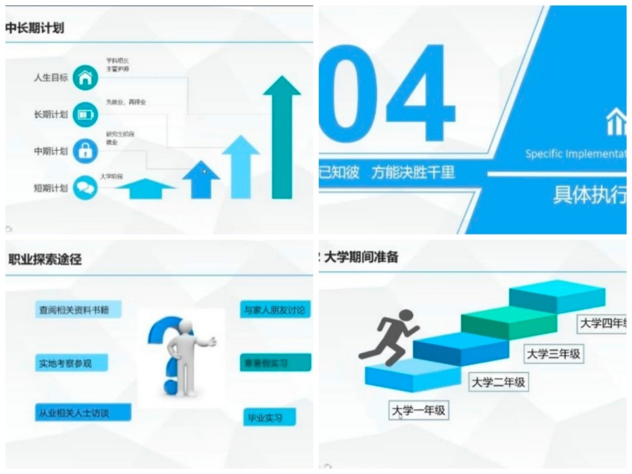曾参加过竞赛的杨万赟、马嫣蓉、张育华、张向伟、毛志云五位同学,分别从不同的视角分享了各自的职业生涯规划,分析了职业生涯规划需注意的问题,答辩过程中容易出现的错误,为同学们提供了许多临场经验。有了清晰的职业定位就像轮子有了轴心一样,才能在一个方向上越滚越快,不会跑偏。此次活动的亮点是由杨万赟同学带领同学们思考上大学的意义、如何突出自己职业生涯中的“亮点”、答辩PPT的制作技巧、答辩时怎样缓解紧张……周密而又细致的经验分享,并希望同学们仰望星空、脚踏实地,不断提高自己的综合素质,选择一条适合自己发展的职业规划路线。