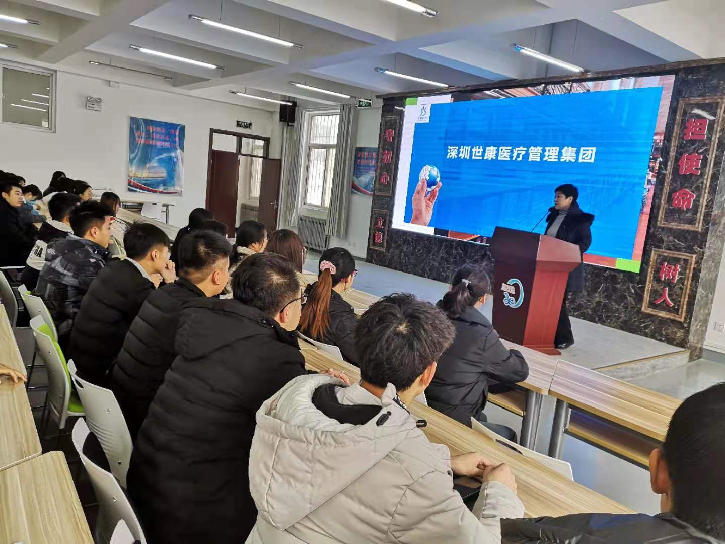 深圳世康医疗管理集团负责人详细介绍了集团运行模式、顶岗实习就业医院情况、招聘条件、实习带教、职业发展、交通食宿保障、薪资待遇及签约条件等,同时就师生关注的实习就业一体化等热点问题进行了现场交流。