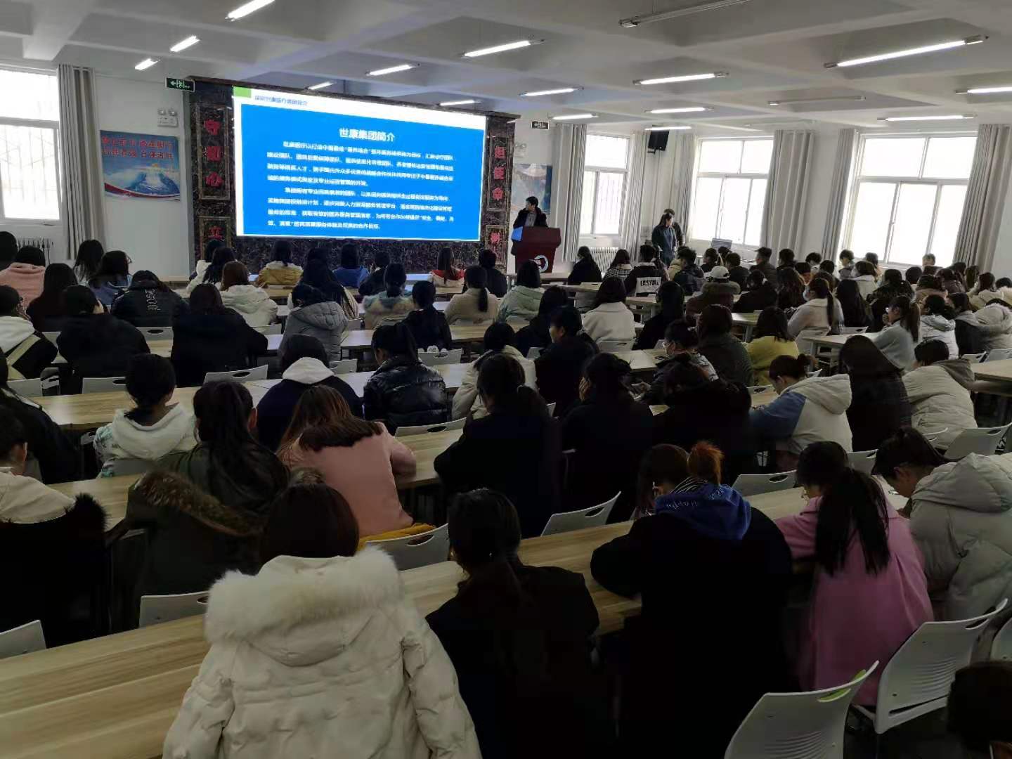 沈承明向师生们介绍了与深圳世康医疗管理集团合作的背景与目标,公司实施顶岗实习促进专升本就业的举措,分析了当前严峻的就业形势,要求毕业生要转变就业观念,珍惜就业机会,抢抓就业岗位,争取高质量就业和充分就业。