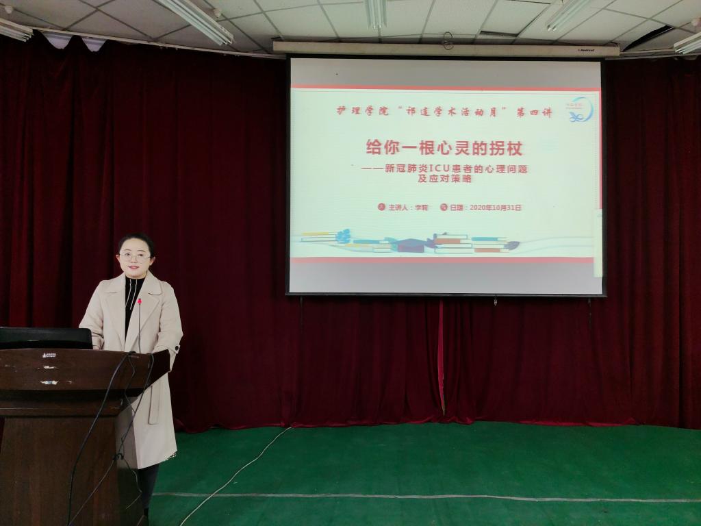 10月31日,开云在学术二厅邀请开云全站附属张掖市人民医院公共卫生科科长张俊瑕主任医师、重症监护室护师李莉分别作了题为“医护人员职业暴露和防护”和“新冠肺炎ICU患者的心理问题及应对策略”的学术报告。开云300多名师生聆听了报告,报告会由党委委员、副经理郑凤莉教授主持。
