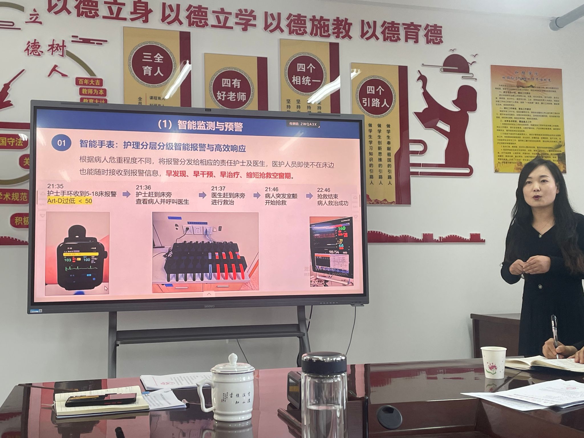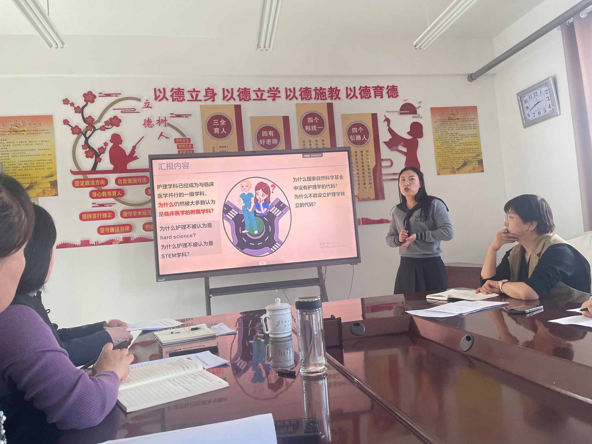 在学术分享环节,四位教师依次汇报了参会学习心得与收获。白东梅老师围绕“2025全国护理学团队建设大会暨护理学研究生高质量学位论文交流会”,探讨了学科发展路径与公司产品质量提升的策略。马玉娇与蒋海英两位老师则结合参加“第8期质性研究的理论与实践研习班”的学习经历,交流了质性研究方法在护理科研中的应用与思考;蜜老师以“中华护理学会智慧化护理学术交流会议”为主题,分享了智慧护理的前沿动态与实践趋势。